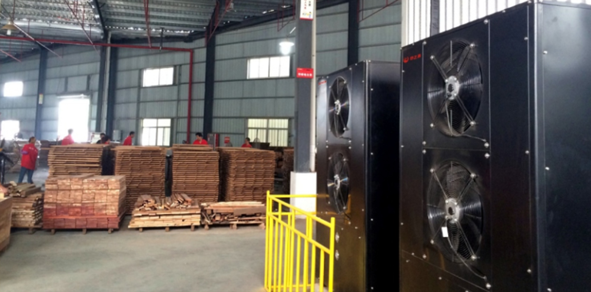 2)針對木材加工,提供原木鋸材烘干、板材二次干燥。采用熱之源研發(fā)的工業(yè)級高溫?zé)岜脵C(jī)組制熱,配套木材智能